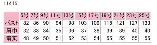 | バスト | 82 | 86 | 90 | 94 | 98 | 103 | 109 | 115 | 121 | 127 | 133 |
