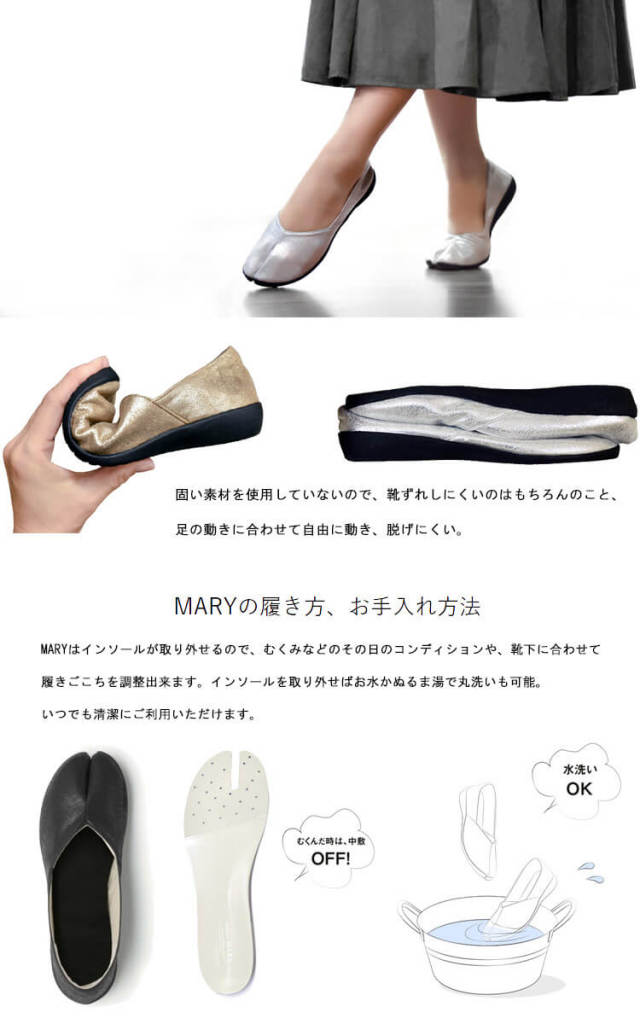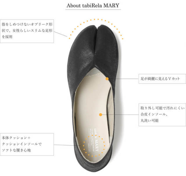 スマートでコンフォートなTabiパンプス、tabiRela MARY【タビリラ マリー】やさしく包み込む足袋らしい履き心地と、足元が綺麗に見えるVカットデザイン。その日のコンディションに合わせてインソールを取り外してもご利用いただける、あなたに寄り添う1足です。「今日も一緒に出かけたい」と思える、快適さとフォーマルさを兼ね備えたコンフォートな足袋型パンプスです。