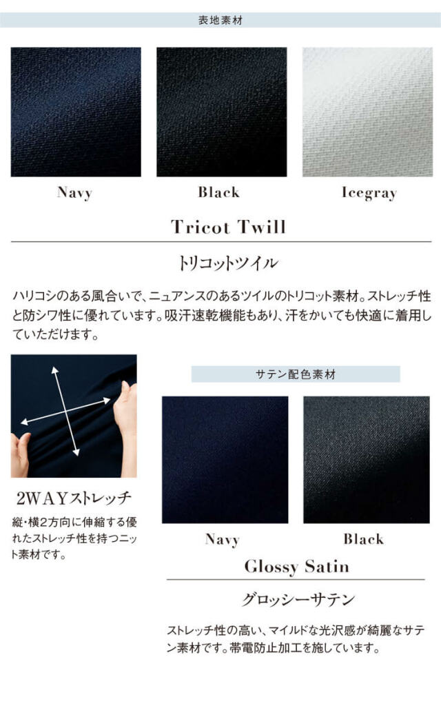 美と優の調和をテーマにした「ラ・ボーテコレクション」は、美容医療・サロン・クリニック・エステなどではたらく女性に向けた上質さとファッション性、快適性をも考慮したワンランク上の女性をかがやきに導く商品を展開しております。ひとつひとつの動作も美しい、はたらく姿に気品を宿すシリーズです。2wayストレッチ素材を使用した、抜群の動きやすさが魅力の新シリーズは、パイピングやボタンでかがやきもプラスしたロイヤルなアイテムを展開します。さらに動くたびに光の揺らぎを感じるサテン配色のアイテムも登場しました。
