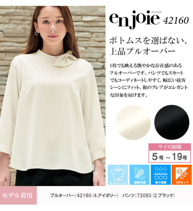 | 製品名: | 事務服 制服 接客 受付 ユニフォーム en joie アンジョア ツイード プルオーバー 42160 |