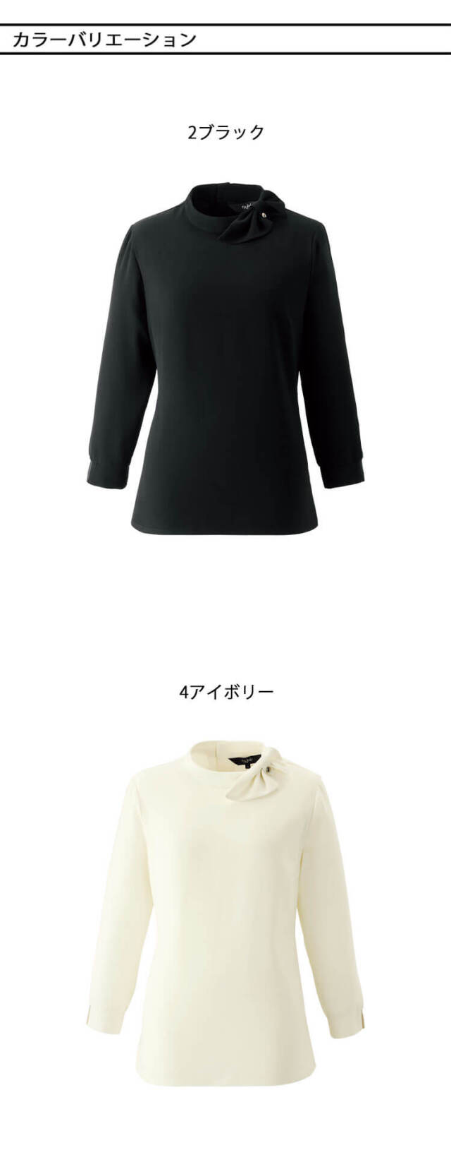 パンツでもスカートでもコーディネートしやすく、幅広い接客シーンにフィットするプルオーバーです。裾のフレアがエレガントな印象を届けます。