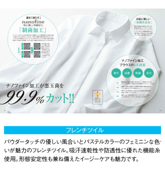 パウダータッチの優しい風合いとパステルカラーのフェミニンな色合いが魅力のフレンチツイル。吸汗速乾性や防透性に優れた機能糸を使用。形態安定性も兼ね備えたイージーケアも魅力です。