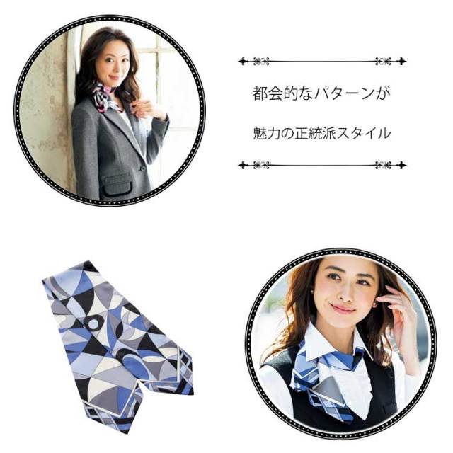 ひとつ付けるだけで、印象ががらりと変わる。ただ華やか、というだけではとどまらない。ほんのひとつのアクセサリーが生み出す魅力。都会的なパターンが魅力の正統派スカーフ。