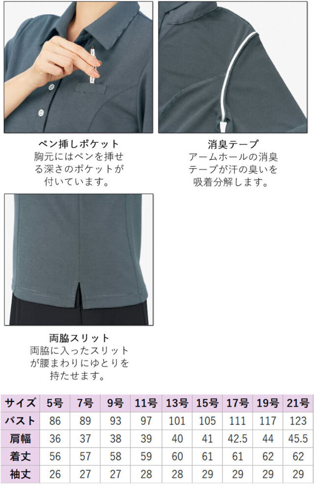 定番のポロシャツよりも第一ボタンをやや下めの位置にデザインして、抜け感を演出。締まって見えるネイビーと配色で、顔周りをすっきりと涼しげに。着脱のしやすさにも配慮しました。吸湿性・放湿性に優れた再生繊維キュプラを複合した高機能なエコ素材「モイステックスクール」を使用。湿度をコントロールして暑い夏でもべたつかず、肌心地のよさを叶えます。