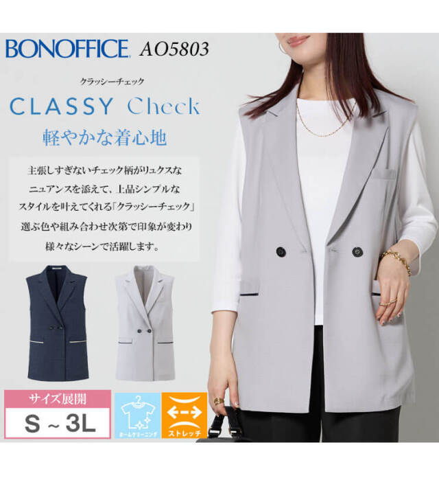 事務服 制服 BONOFFICE ボンオフィス ベスト AV1843 S522シリーズ クラッシーチェック ボンマックス 2025年春夏新作