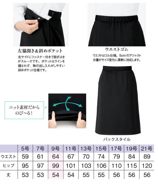 ニットならではの伸縮性の良さで動きやすく、締め付け感のない着心地は働く女性の強い味方になってくれます。さらにシワになりにくく、アイロンいらずでお手入れのラクチンさも魅力です。立ったり座ったりを繰り返してもシワにならず美しい。立ったときスッキリ見えて知的な印象に。