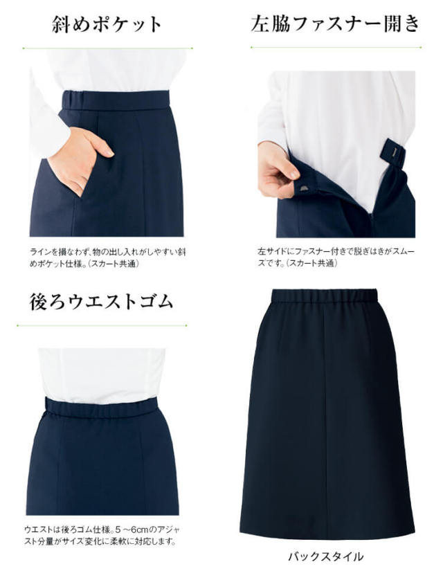 歩くたびに揺れるドレープ感が美しい。トレンド感あるアシンメトリーのプリーツスカート。縦ラインを強調するため、スタイルアップも叶えてくれます。働く女性に嬉しい機能たっぷり詰まったボトムスシリーズ。通気性抜群、吸水速乾、抗菌防臭裏地などオフィスワークを快適に過ごせる機能が満載。