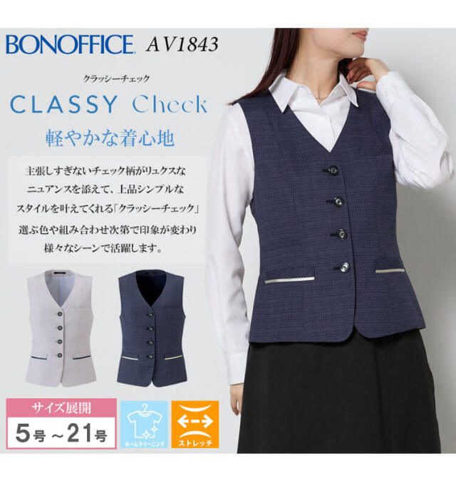 事務服 制服 BONOFFICE ボンオフィス ベスト AV1843 S522シリーズ クラッシーチェック ボンマックス
