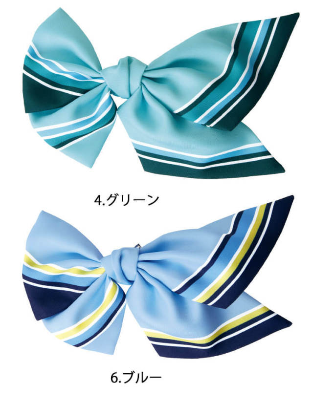 着こなしを1ランクアップさせるアクセサリーコレクション。洗練された印象に格上げするシャープなストライプがアクセント。リボンの裏側はクリップとピンのダブル仕様になっています。