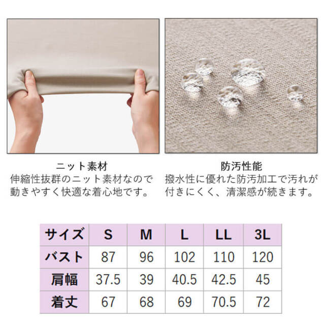 着心地は軽やかで動きやすく、高級感のある素材と洗練されたデザインで好印象を叶える新しいニットシリーズ。伸縮性抜群のニット素材なので動きやすく快適な着心地です。また撥水性に優れた防汚加工で汚れが付きにくく、清潔感が続きます。