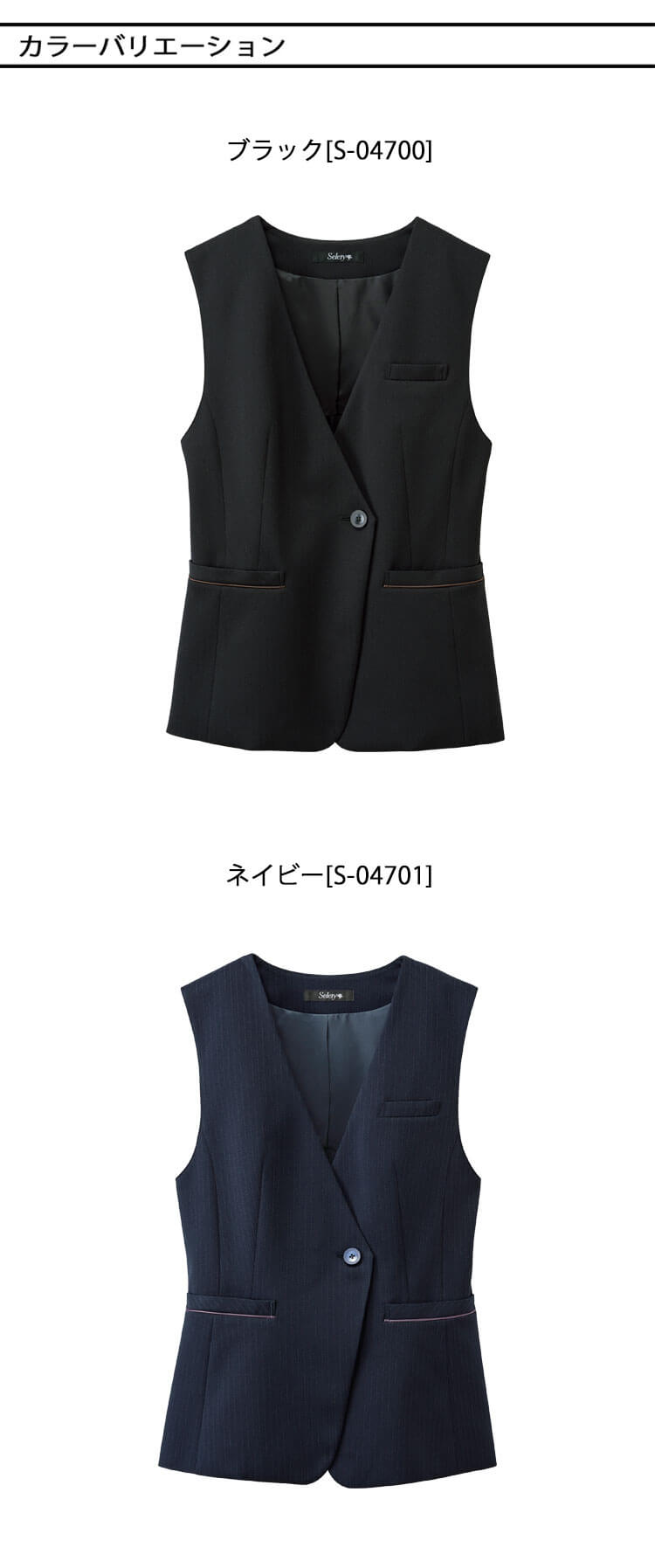 | 製品名: | 事務服 制服 オフィス セロリー selery ロングベスト S-04700 S-04701 |