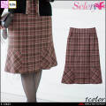 裾に広がるフレアシルエットがレディな印象のスカートです。 後ろゴム仕様で、ウエストの圧迫感もなく、エレガントに着こなせます。着るだけで“スペシャル”を感じられる、働く服「メルティチェック」です。三甲テキスタイルとセロリーが手掛ける5種類もの糸で織り上げたmade in Japanの特別な素材です。 今シーズンは、旬のブラウンにボルドーでチェックを施し、甘い雰囲気に仕上げました。 後加工には、“防ぐ”機能に優れたTioTio プレミアム加工です。