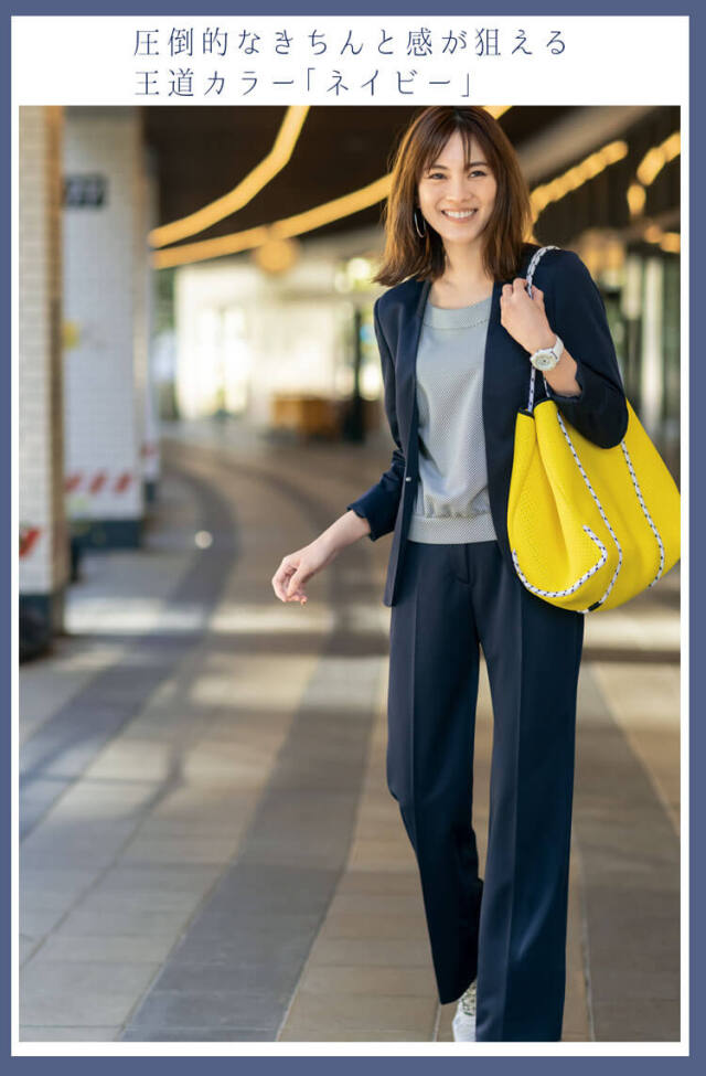 リモートワーク、オンライン会議など、どんどん多様化が進む“働き方”とともに、働く服に求められることも変わろうとしています。これからはシーンや業種問わず、組み合わせ次第でいつだって自由に自分らしくいられる服が一番!、そんな現代に寄り添うマルチシリーズは、これからさらに加速するニューノーマル時代の働く定番です。ウールとポリエステル、それぞれの長所を融合したハイブリッド梳毛調ポリエステル素材「トリクシオン(R)」を使用したニットです。さり気ない光沢感が上品な仕上がりです。伸縮性、自宅で洗えるイージケア性に優れた高機能素材です。
