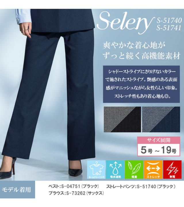 | 製品名: | 事務服 制服 オフィス セロリー selery ストレート パンツ S-51740 S-51741 |