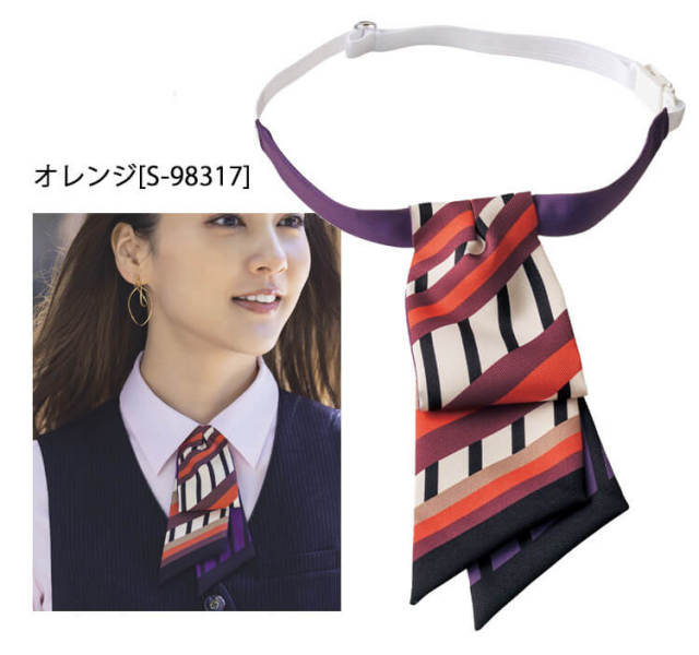 スタイリッシュなネクタイ風リボンでベーシックスタイルにも華やかさをプラスします。第一印象を華やかに、会社のイメージをアップするセロリーの簡単アクセサリーです。 仕事スタイルを優雅にアップデートするなら、華やかな彩りを添えるスカーフ&リボンに注目です。遊び心を備えた色・デザインに加えてワンタッチで取り外し簡単なアクセサリーです。