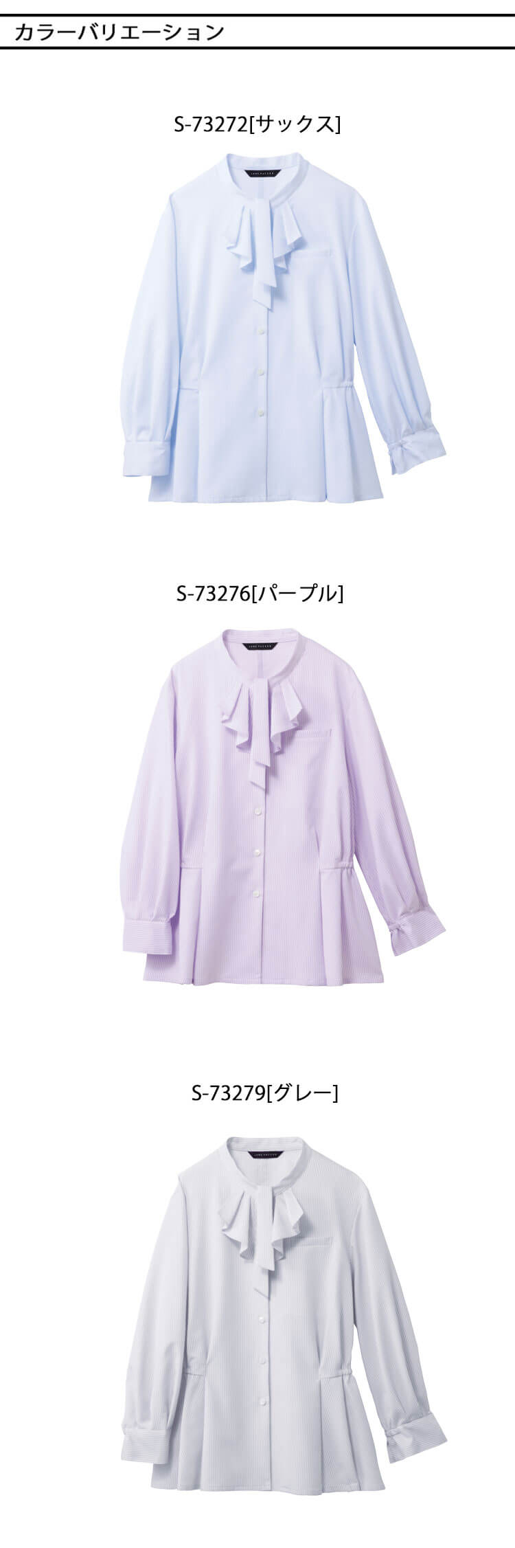 | 製品名: | 事務服 制服 オフィス 受付 接客 セロリー selery 長袖ブラウス S-73272 S-73276 S-73279 ジェーンパッカー janepacker |