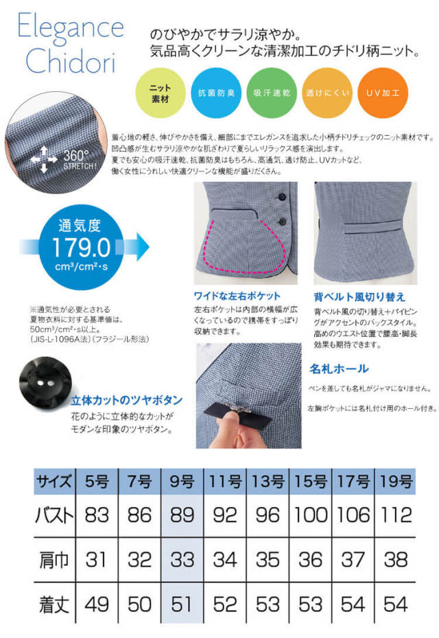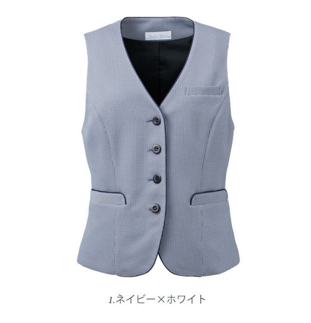 どんな動きもステキに魅せる軽やかなオールシーズンベストスタイル。受付・金融窓口対応やショールーム、カーディーラー、クリニックなど幅広いお仕事で活躍できる制服です。安心の抗菌防臭加工を施した爽やかな風を通すサマーニットを採用しました。気品のあるチドリチェックの優美な趣で、お客様を涼やかにお迎えできます。