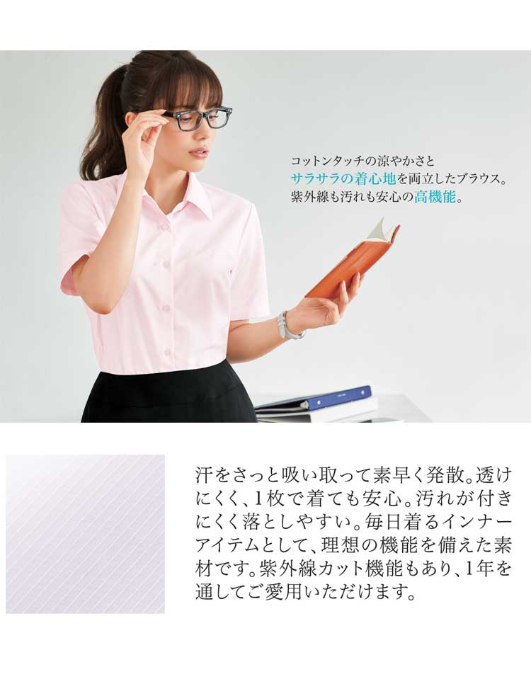 コットンタッチの涼やかさとサラサラの着心地を両立したブラウス。紫外線も汚れも安心の高機能。