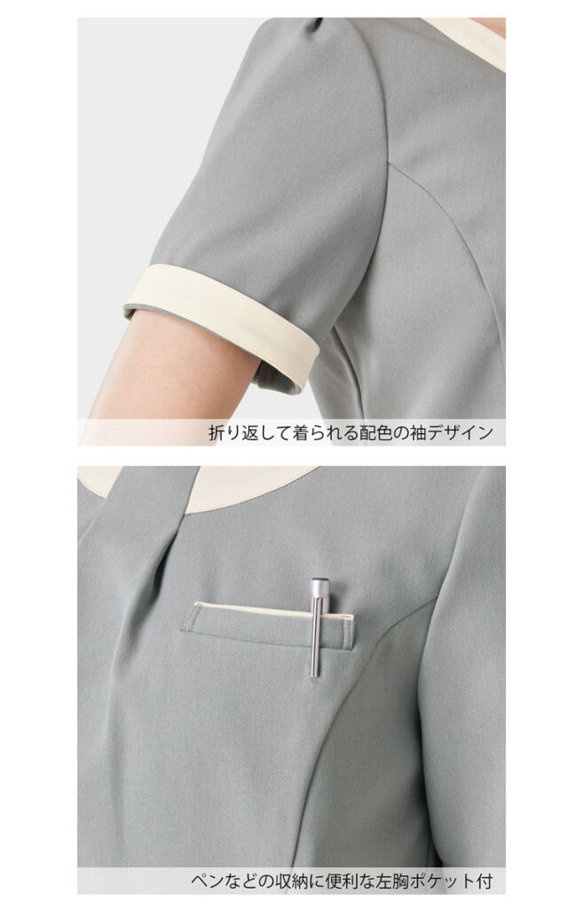 首まわりのデザインが印象的なおもてなし向けワンピースです。使用しているフルーレクスは、今までの布帛素材では出せなかったストレッチ感もありつつ、工業洗濯対応、速乾性、イージーケア性も有する素材です。スカーフがなくてもフォーマルな印象をつくる襟元は、ジャケットを羽織った際もお顔まわりのアクセントなります。スカート部分はほどよいマーメイドシルエットで、女性らしさを演出しています。メディカルユニフォームでは珍しい上品なツイード調の素材のワンピースです。無料カタログ、無料貸出しサンプルも対応。大量注文のお値引きもご相談ください。事務服・オフィス制服の激安全国通販サイト【事務服ショップ】無料カタログ、無料貸出しサンプルも対応。大量注文のお値引きもご相談ください。事務服・オフィス制服の激安全国通販サイト【事務服ショップ】。