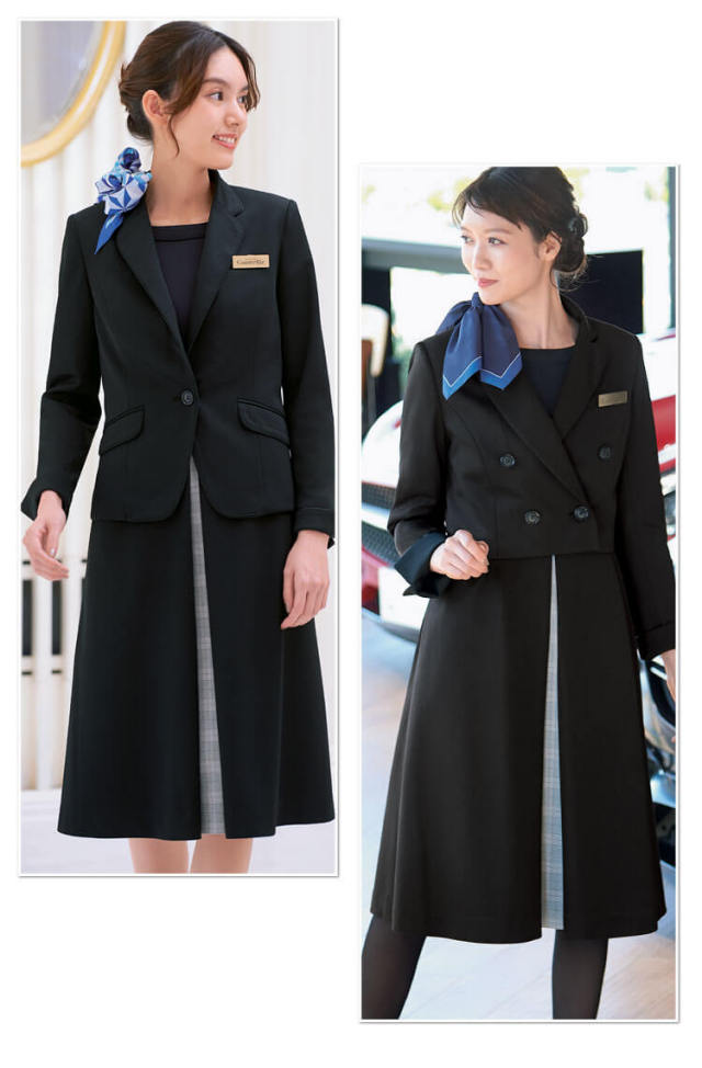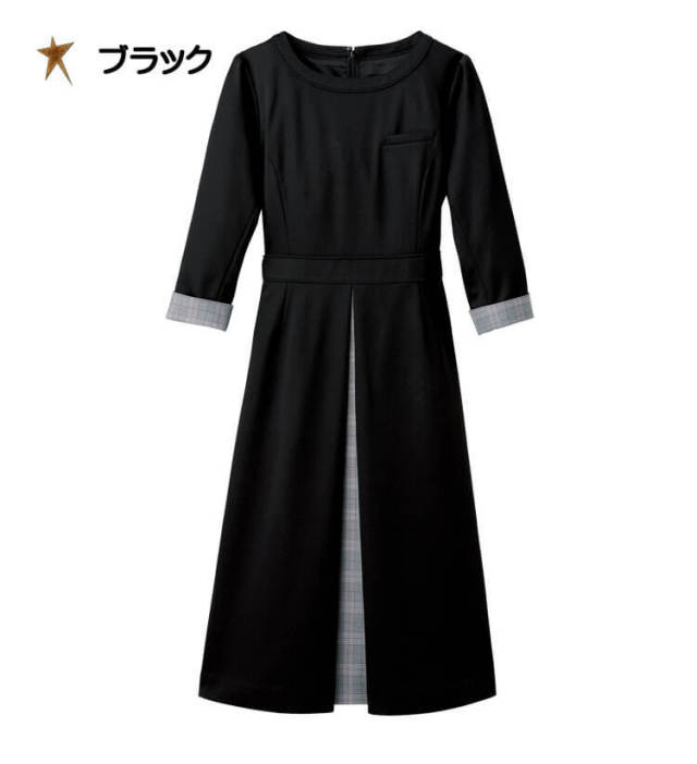 上質感が引き立つチェックとブラック。クラシカルな表情が新鮮に感じられるチェックと上品な光沢が美しい表面感のあるブラックが多大の魅力を引き立てあうコレクションです。接客シーンにふさわしい上質感を漂わせながらもすぐれたストレッチ性で着心地はしなやかです。清潔感と安心感に配慮した制菌加工を施すなどきめ細かな心配りにもこだわりました。ボックスプリーツからのぞくチェックがアクセントのワンピースです。 化粧品販売、おもてなし、ビューティー系サロン、メディカルクリニック、スパ・リゾート施設、ヘルスケア製品販売、ケアホームなどさまざまな職業に合ったシリーズです。