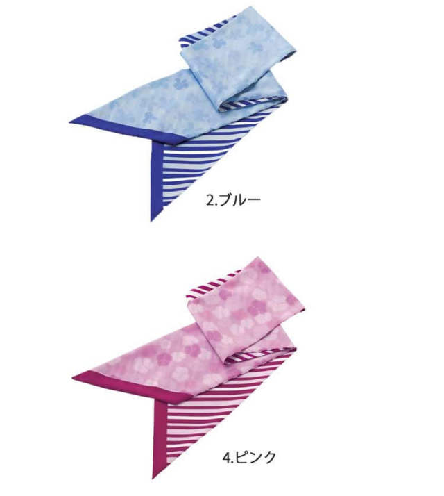 ストライプと花柄をそれぞれ表裏にデザインしたスカーフは結び方次第で表情多彩でアレンジできます。