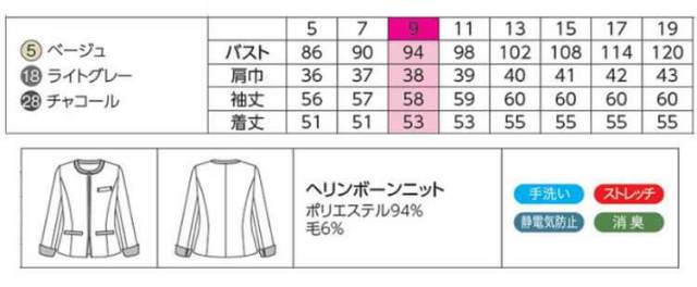 | 製品名: | おもてなし制服 受付 ハネクトーン ノーカラージャケット 9178 ヘリンボーンニット |