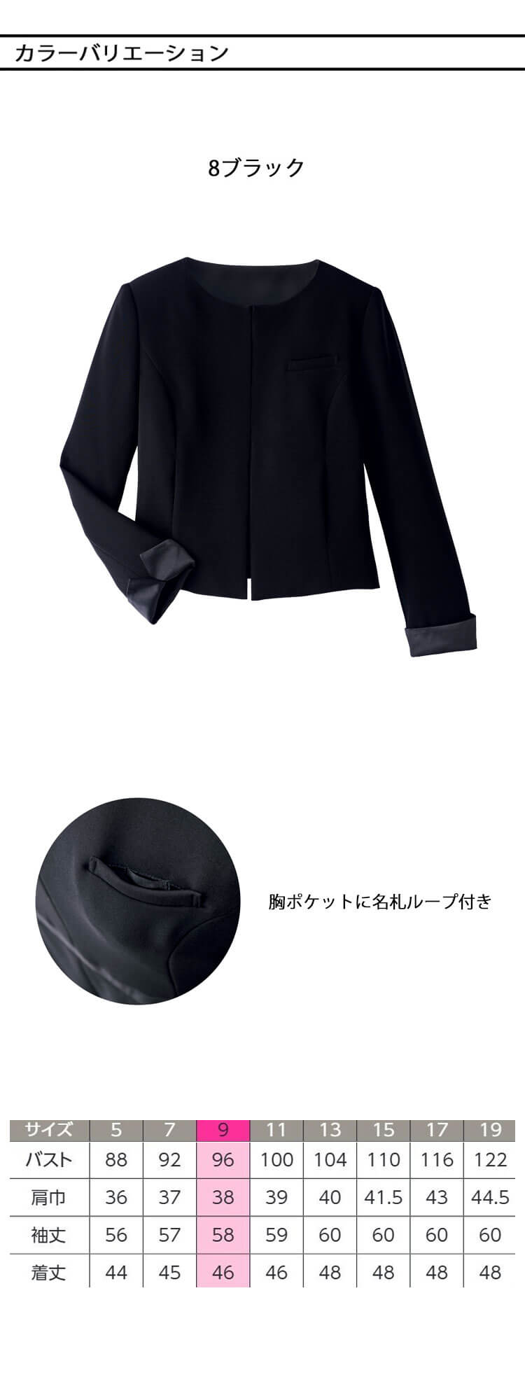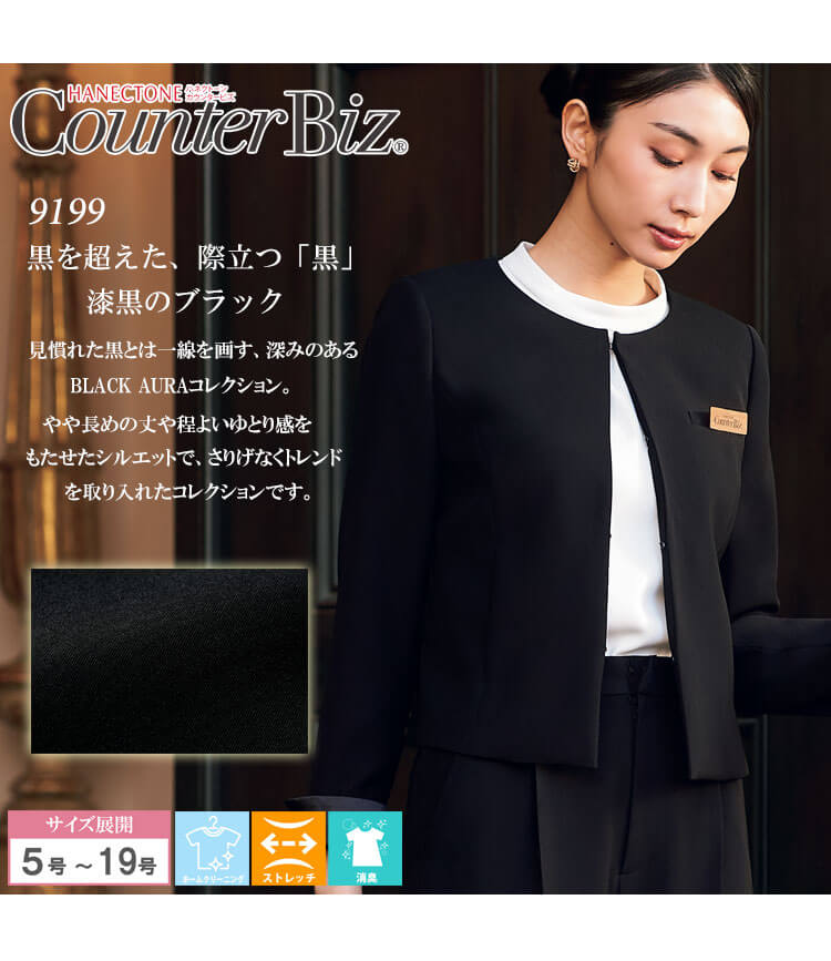 | 製品名: | ユニフォーム 制服 受付 ハネクトーン ノーカラー ジャケット 9199 BLACKAURA 漆黒 |