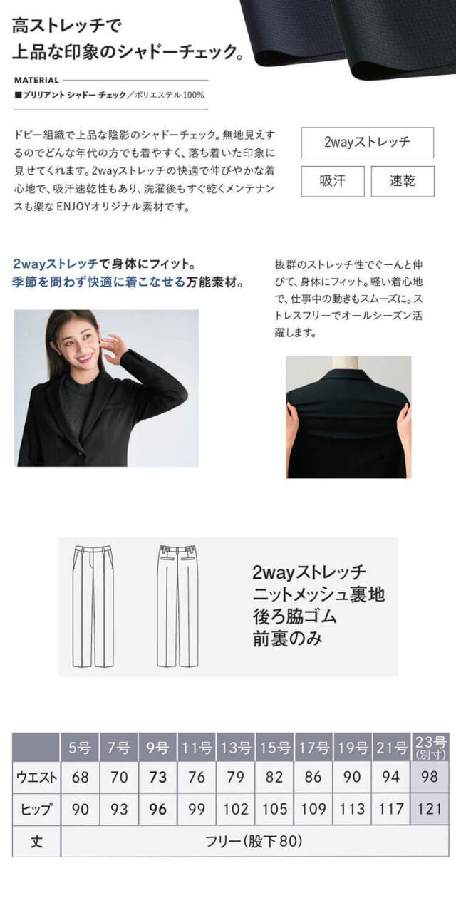 | 製品名: | 事務服 制服 接客 ENJOY エンジョイ オフィス カーシーカシマ ストレートパンツ EAL1008 エブリィチェック |