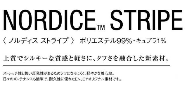 上質でシルキーな質感と軽さに、タフさ融合した素材。ストレッチ性と強い反発性があるためシワになりにくく、軽やかな着心地。日々のメンテナンスも簡単で、耐久性に優れたENJOYオリジナル素材です。