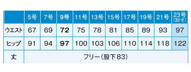 ※サイズ表には19号(トップス)、23号(ボトムス)も別寸として掲載しておりますが、備蓄されていない製品もございますので在庫についてはご注文後に確認となります。