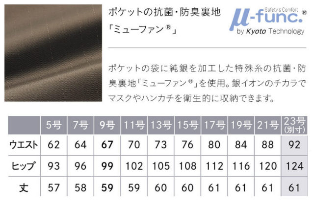 ※サイズ表には19号(トップス)、23号(ボトムス)も別寸として掲載しておりますが、備蓄されていない製品もございますので在庫についてはご注文後に確認となります。