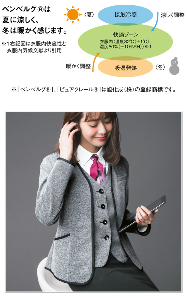 「ピュアクレール」は、コットンから生まれた再生セルロース繊維「ベンベルグ」を使用。まるで呼吸するように湿気を放湿し、優れた湿度コントロールによって快適な状態を保ちます。