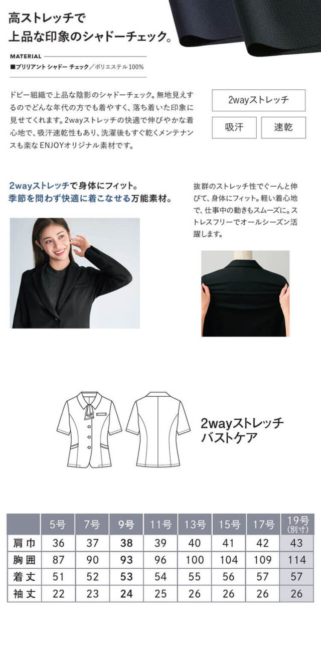働く私の毎日に心地よくフィットします。衣替えの時期や体感温度は人それぞれだからこそ、暑い季節も寒い季節もオールシーズン着られる素材で、上品な印象も兼ね備えた才色兼備なユニフォームですさりげないフリルで女性らしさをアップします。着脱しやすい前開きデザインのオーバーブラウスです。2wayストレッチで身体にフィットする季節を問わず快適に着こなせるスマート素材です。ドビー組織で上品な陰影のシャドーチェックは、無地調柄でどんな年代の方でも着やすく、落ち着いた印象に見せてくれます。