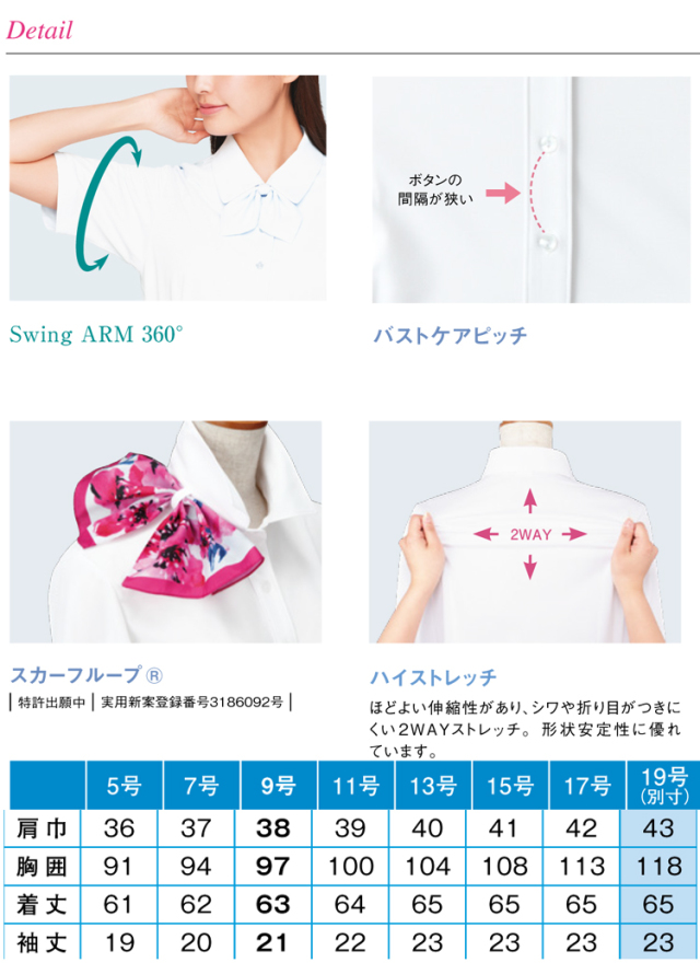 ※サイズ表には19号(トップス)は別寸として掲載しておりますが、備蓄されていない製品もございますので在庫についてはご注文後に確認となります。