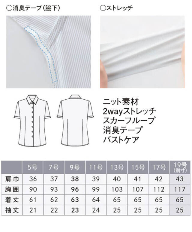 ※サイズ表には19号(トップス)、23号(ボトムス)も別寸として掲載しておりますが、備蓄されていない製品もございますので在庫についてはご注文後に確認となります。<