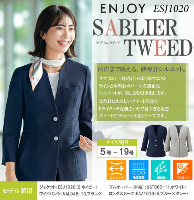 | 製品名: | 事務服 制服 接客 ENJOY エンジョイ オフィス カーシーカシマ ライトジャケット ESJ1020 サブリエツイード |