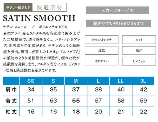 笑顔も華やぐエレガントなつやめき、奥行きのある艶感と胸もとのタックが華やかな印象にしてくれます。ほどよくハリ・コシがあり、ボディラインを拾いにくいシルエット。1枚でも安心して着られます。