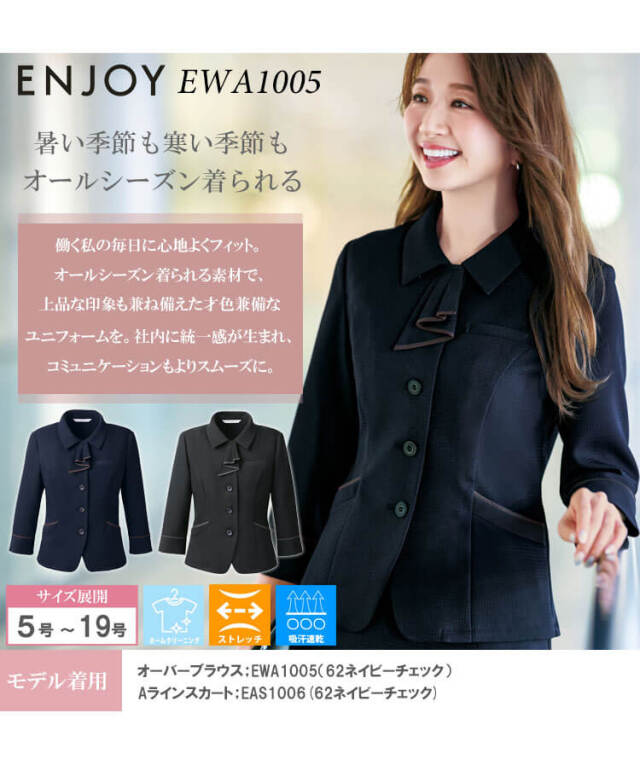 | 製品名: | 事務服 制服 接客 ENJOY エンジョイ オフィス カーシーカシマ オーバーブラウス(七分袖) EWA1005 エブリィチェック |