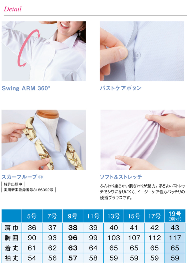 ※サイズ表には19号(トップス)は別寸として掲載しておりますが、備蓄されていない製品もございますので在庫についてはご注文後に確認となります。