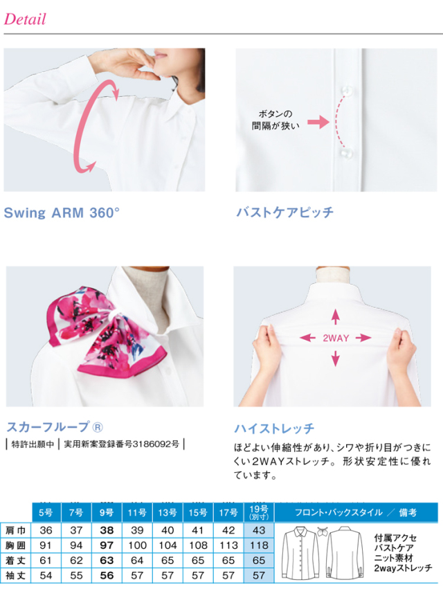 ※サイズ表には19号(トップス)は別寸として掲載しておりますが、備蓄されていない製品もございますので在庫についてはご注文後に確認となります。