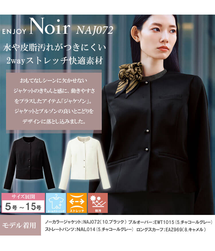 | 製品名: | おもてなし制服 受付 ENJOY Noir エンジョイ ノワール ノーカラージャケット NAJ072 カーシーカシマ |