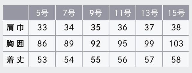 ※サイズ表には19号(トップス)、23号(ボトムス)も別寸として掲載しておりますが、備蓄されていない製品もございますので在庫についてはご注文後に確認となります。