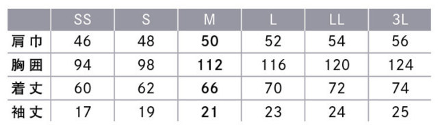※サイズ表には19号(トップス)、23号(ボトムス)も別寸として掲載しておりますが、備蓄されていない製品もございますので在庫についてはご注文後に確認となります。