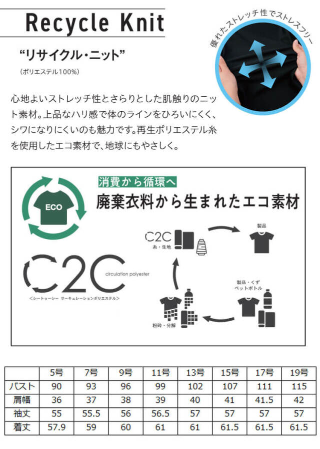 ラクしてキレイが叶う、すごラク ノーカラージャケット。 ニットならではの動きやすさを兼ね備えた進化系ジャケットです。耐久性の高いトリコット編み地で型くずれしにくく、いつでもきちんと感をキープします。廃棄衣料から生まれた再生ポリエステル糸を100%使用のエコ素材。