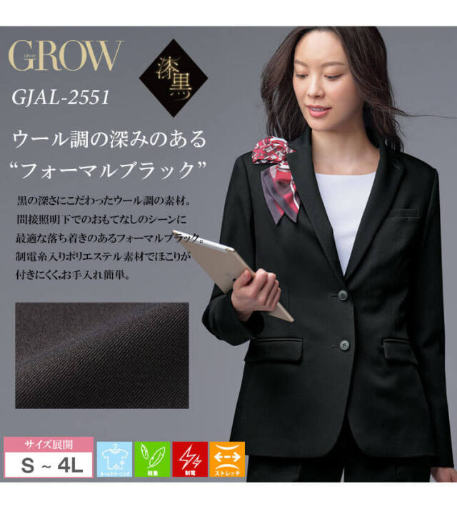 | 製品名: | オフィス 事務服 制服 接客 受付 SERVO サーヴォ GROW (グロウ) ジャケット GJAL-2551 |