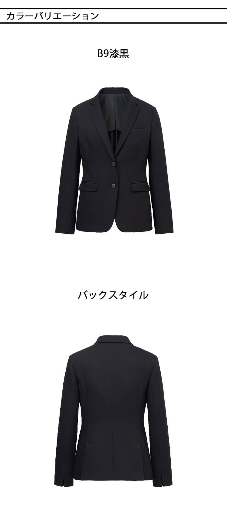 ウール調の深みのあるフォーマルブラックです。高級感や格式を象徴する色は、着る人に自由と美と授けてくれます。心地よさを謳う「着るジュエリー」のようです。 黒の深さにこだわったウール調の素材です。間接照明下でのおもてなしのシーンに最適な、落ち着きのあるフォーマルブラックです。制電糸入りポリエステル素材でほこりが付きにくく、お手入れ簡単です。 ボディラインが出にくい3面パネルを採用し、ヒップが隠れる長めの着丈です。パンツとの相性も抜群です。縦横に伸びる2WAYストレッチで快適な着心地です。