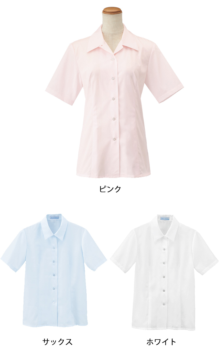 素材はスタンダードなファインブロードで、さらっとした着心地の吸汗速乾対応の半袖ブラウスです。