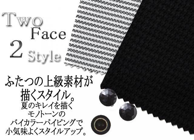 シャドーチドリに上品な遊び心が漂うバイカラーのパイピング仕立て。エレガンスな印象を放ちながら、涼しくサラリとした着心地も魅力。