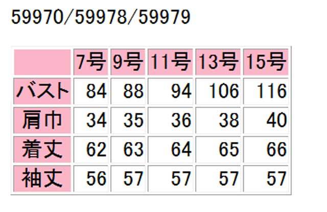 | 着丈 | 62 | 63 | 64 | 65 | 66 |
